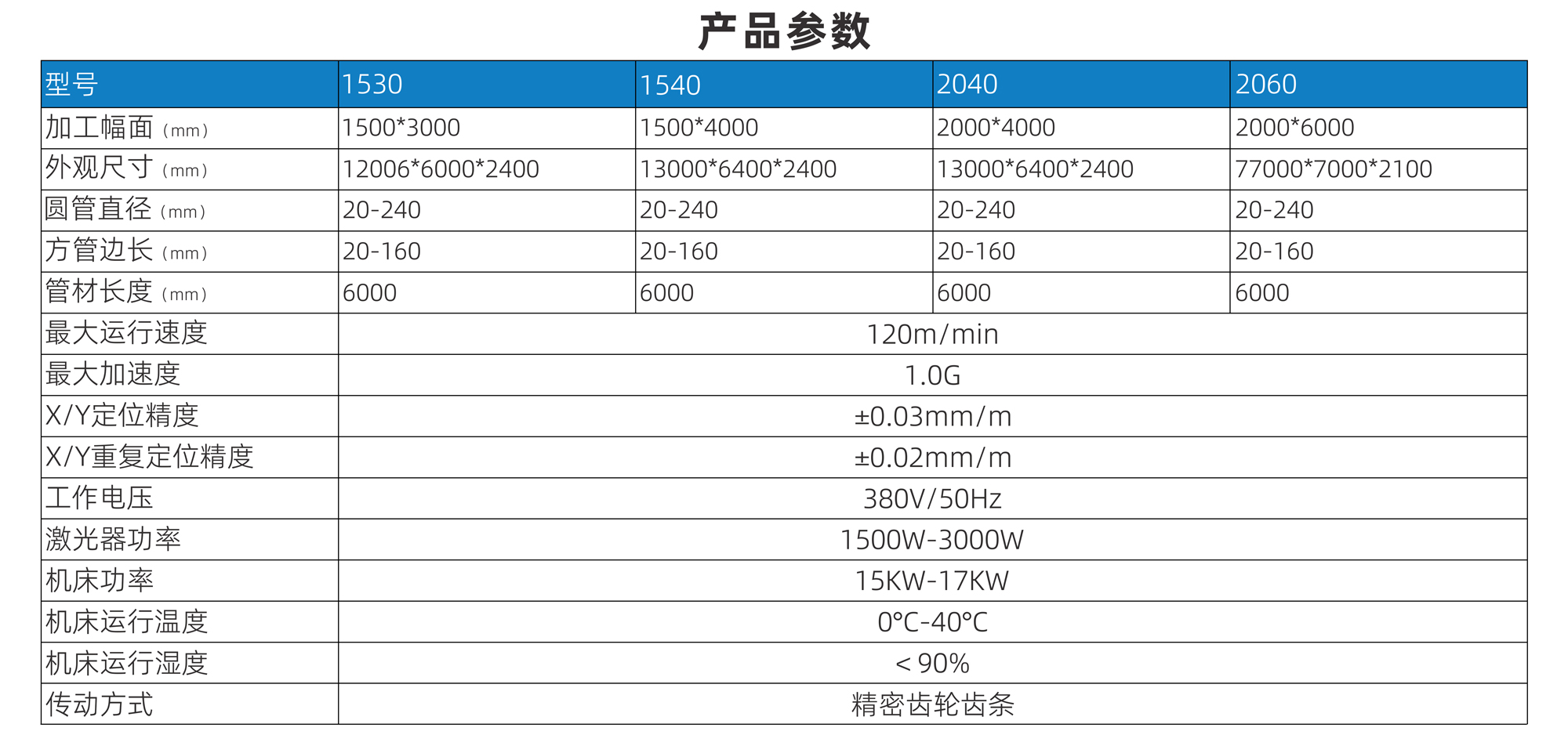 | 激光器功率 | 1500W-3000W | |||