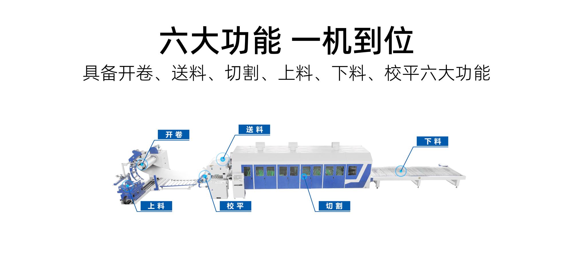 具備開卷、送料、切割、上料、下料、校平六大功能